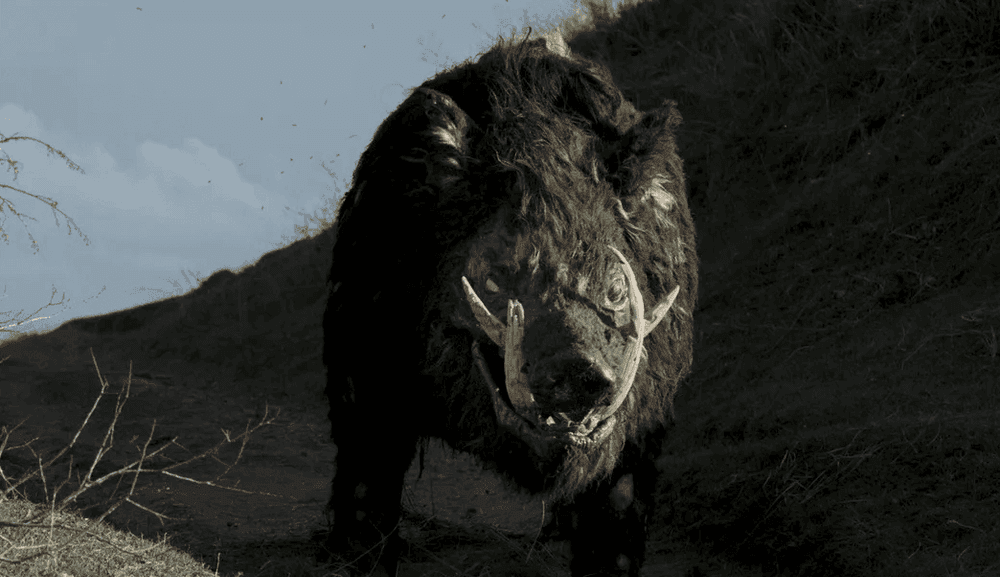 Wild boars also are a recurring version of this trope in film, and seemingly only ever in B-grade schlock. Mostly, the wild pig is a mutated version of its kind, and individual freak of nature. These exagerated figures build upon pre-existing ideas of the wild boar as ferocious, occasionally predatory, and able to grow to sizes of a 2-300kg.